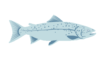 All Atlantic salmon begin life in freshwater streams or rivers. Females lay an average of 7,500 eggs in gravel nests called “redds.” Eggs incubate slowly over an extended period of time, with only about nine to 20 percent of the eggs surviving to the “fry” stage. Fry remain buried for about six weeks and emerge from their redds around mid-May. Once fry disperse from their redds they enter their “parr” stage where they develop their blue-violet camouflage stripes. Parr can remain in freshwater rivers and streams anywhere between one and five years where they prefer shallow, cold, fast-flowing water and will feed on invertebrates, terrestrial insects, and even small fish. Eventually the parrs enter a physiological process called “smoltification” that prepares them for marine life. Upon entering this phase, the “smolts” will migrate downstream and enter the ocean where they are pelagic, will undergo the majority of their physical growth, and conduct extensive feeding migrations. During this time, juveniles will feed on krill and amphipods. Both juveniles and adults feed on a variety of fishes – with adults feeding on herring, smelt, and small Atlantic mackerel as well as squid. Atlantic salmon are known to remain in their marine environments for up to four years. Once they reach maturation, Atlantic salmon will return to the natal freshwater streams or rivers of their birth – which have been imprinted on them during smoltification. Not all Atlantic salmon die after spawning and some fish, now referred to as “kelts,” return to the sea after spawning and will repeat the breeding cycle.